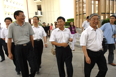 参观过后,李意珍一行与深大教师和学生代表进行了座谈,倾听大家的心声与建议。深大党委书记江潭瑜一开始就报喜:第一喜是深大通过了教育部本科教学工作水平评估,初步评估结果为优秀;第二喜是专业硕士点增至4个,为在职人员攻读硕士学位提供了广阔平台;第三喜是教育部授予深大为国家大学生文化素质教育基地,这是深大的第一个国家级教学科研基地;第四喜是深大科研水平不断增强,科研经费增长较快,2004年为5000多万元,今年争取突破1亿元;第五喜是随着深大的知名度不断提高,报考深大的人越来越多。深大校长章必功说,目前深大正以学术校园、人文校园、创新校园、和谐校园为抓手,努力把深大建设成为一所在国内外有较大影响的高水平、有特色、综合性教育研究型大学。
