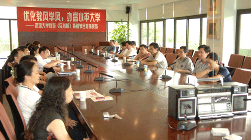 9月5日上午11点,我校章必功校长、教务处徐晨处长和招生就业办姚凯主任作为节目嘉宾参加了深圳广播电台《民心桥》直播节目,以“优化教风学风,办高水平大学”为主题现场解答了报考招生、学生宿舍、医学院筹建及新校区建设等广大市民关心的热点问题。