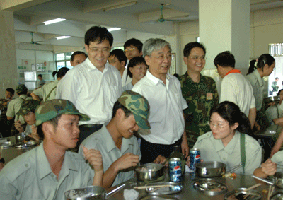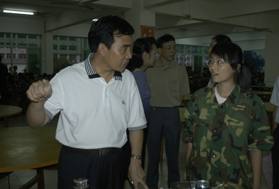 章校长等校领导在部队领导的陪同下走访了学生宿舍和饭堂。了解学生起居饮食,殷切询问学生的生活和学习情况。