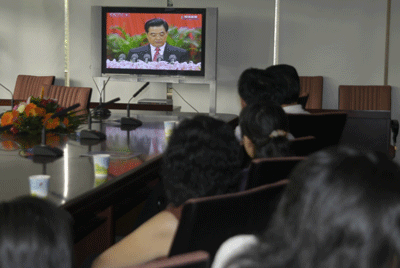10月15日上午,乐竞平台广大师生通过电视收看了党的十七大开幕会现场直播,认真学习胡锦涛总书记重要报告。 15日上午,学校党委通过校园公文通发出通知,要求广大师生员工关注党的十七大。9:00,办公楼201会议室,机关干部和师生代表集中收看了党的十七大开幕会电视现场直播,校党委副书记、纪委书记陶士平与师生代表一起观看。 时光广场电子大屏幕全程播放了党的十七大开幕会,很多师生驻足收看。还有不少老师、同学在办公室、教室、自习室、宿舍,通过校园网及时了解党的十七大开幕会的内容。
