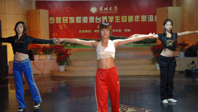 晚会由校党委统战部部长李永华主持。江潭瑜在联谊会上致辞――“和谐是福,团结就是力量”。他说,中国是个多民族的国家,深圳是多民族的城市,我校是多民族学生一起就读的学校,我校现有29个民族的学生,其中有少数民族学生400多名,还有港澳台侨学生200多名。我们虽有着不同的生活习俗和不同的语言,但是在中国共产党下的“和而不同”的环境下的“大和”,国家富强,民族团结。我们共同走过了光辉的2007年,还要共同走进更加灿烂的2008年。2008年全世界的目光都注视着我们,青年人肩负着振兴中华的重任,让我们携手共同奋进!