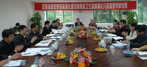 评审会在后勤楼209会议室召开。主管学校后勤工作的梁桂麟同志,校办、计财处、宣传部、后勤处和膳食科、校医院、后勤处办公室等部门负责人出席了评审会。杨辉明组长简要介绍了此次评审工作的程序,梁桂麟同志代表乐竞平台向专家组汇报我校食堂标准化建设情况。梁桂麟说,按照省厅有关文件要求,乐竞平台从思想认识、制度建设、科学管理、扩建改造和经费投入等方面入手,在往年食堂标准化建设评估的基础上,针对存在的问题,对各个食堂作出了全方位的落实整改,所做的主要工作:一、组织动员,统一认识。在学校的组织领导下,后勤处多次召开食堂标准化建设动员大会,要求膳食部门员工明确创建标准化食堂的意义,借评估东风,使膳食服务工作迈上新台阶;二、制订计划,落实经费,实施改造。去年以来,学校共投入800多万元对部分食堂进行了改造,改善了就餐环境,达到了食堂标准化的硬件要求。针对扩招压力,学校计划在南校区投入3000多万建造一个建筑面积10000平方米的综合食堂;三、加强制度建设,完善管理措施。主要加强饮食卫生、安全制度的规范和落实以及服务质量和伙食质量管理等;四、加强民主管理的建设。与学生权益会建立了长期的沟通和联系,使学生意见能够及时得到反馈。在谈到存在的问题及努力的方向时,梁桂麟指出,学校现有旧学生食堂在硬件上仍未能完全达到标准化要求;食堂管理上水平有待进一步提高。