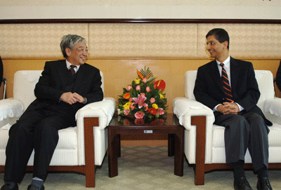 昨天中午,哈佛代表团一行在与乐竞平台就双方医学院合作的探讨告一段落后,在五洲宾馆受到副市长闫小培的接见。闫小培表示,深圳目前有医疗机构2100多个,已形成一个完善的医疗体系,无论是从教育、卫生各方面都满足了深圳大规模人口公共服务的需求,但着眼于未来,还存在一些不容忽视的问题。比如,因为深圳这个年轻城市的特有特点,相对于整个完善的教育系统,深圳市的高等教育水平还略显薄弱,无论是数量、还是种类上都存在一定差距。
