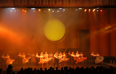 舞蹈团给我们带来的是改编的19世纪舞剧《太阳传奇》。该剧共分为两幕,由“春天的黎明”、“晨光中的祭祀”等15个环节组成。该剧的背景音乐吸收了东欧民间音乐的质朴曲调,将二胡、萨克斯,鼓乐,铜管和小提琴完美融合,整部舞剧从古老的匈牙利民间传说演绎到清新神秘的现代都市。台上,由灯光虚拟而成的日月星辰?四季轮回的景象更让观众尽享来自遥远他国的独特视觉氛围。尽管彼此存在语言沟通上的障碍,但是艺术无国界,精湛、充满激情的舞蹈演出感染了在场的所有人,雷鸣般掌声一阵又一阵回响,连观看的小朋友也不禁模仿着演员扭动着身体。演出结束后,校学生会主席向舞蹈团赠送了纪念品。