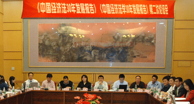 中国法学会经济法学研究会2007年会发出编写《中国经济法三十年发展报告》、《中国经济法学三十年发展报告》的倡议后,学界同仁热烈响应,十分踊跃。这两个“发展报告”的落实及提交政府有关部门,不仅对中国经济法和经济法学的发展具有重大意义,而且对建立和完善中国特色社会主义法律体系,建设社会主义法治国家,推动中国法学的发展,具有重大意义。受中国法学会经济法学研究会的委托,本届博士论坛还专门安排了半天时间召开《中国经济法三十年发展报告》和《中国经济法学三十年发展报告》第二次论证会。2008年4月27日下午第二次论证会在国际会议厅D厅举行,中国法学会经济法学研究会副会长、中山大学程信和教授主持会议。与会代表就两个报告的框架以及如何写好两个报告提出了一些建议。