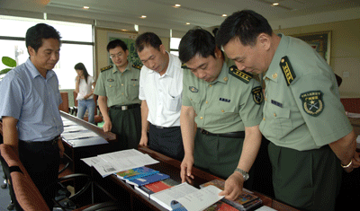 调研组现场阅览了我校历年军训积累、编制的五六十种军训资料,对我校军训资料的丰富性、系统性、专业性称赞不已。