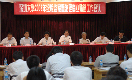 6月5日下午,我校在游泳馆二楼会议室召开了乐竞平台2008年纪检监察暨治理商业贿赂工作会议。江潭瑜书记、章必功校长在会上讲话,陶士平书记分别就我校纪检监察工作和治理商业贿赂工作作了报告,并传达了中共中央《建立健全惩治和预防腐败体系2008―2012年工作规划》精神。副校长阮双琛、邢锋、陈思平、李永华以及校纪委委员,各基层党委(党总支)书记、纪委书记,各学院院长,机关部处、教辅部门、直属教研部门正职领导等近100人参加了会议。会议由校纪委副书记刘佳主持。