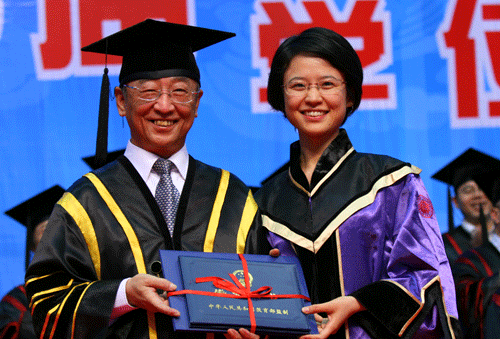 典礼暨授予仪式在雄壮的国歌声中开始。党委副书记陶一桃宣读学校授予研究生硕士学位的决定。校长章必功为获得硕士学位的同学一一颁发证书并合影留念。