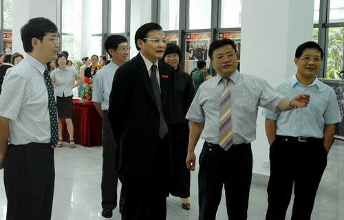 随后,江潭瑜、阮双琛和留学生部的师生们一起观看了图片展,并深入留学生部办公室,看望了老师们。