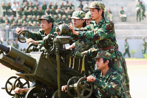 9月25日,我校2008级新生结束14天的军训生活。校领导江潭瑜、章必功、陶士平、李永华分赴广州广东国防训练教育基地、深圳葵涌预备役高射炮兵师五团基地、深圳梅林防化团检阅军训学生,并为先进个人、集体颁奖。