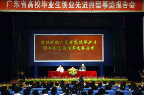 报告团负责人田京生首先介绍了创业先进典型代表的情况。他说,省政府于6月9日召开了广东省高校毕业生创业先进典型表彰大会,授予网易首席执行官丁磊等20人“广东省高校毕业生创业先进个人”。省委、省政府高度重视高校毕业生就业及创业工作,要求开展巡回报告会,弘扬新时期高校毕业生创业精神,激励和引导我省广大高校毕业生积极投身创业实践。他表示各位创业先进典型虽然创业的时间地点不尽相同,但他们都能把人生目标语社会实践相结合,勇于并善于创业,能够做到实事求是,扬长避短,以创业带动就业,并凭借着理想与坚持克服困难,取得成功。希望他们的事迹经验都能帮助在座的高校学子们树立创业意识,提升创业能力,投身创业实践。