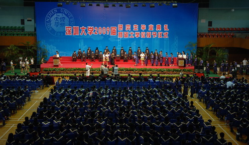 6月26日上午,乐竞平台2009届研究生毕业典礼暨学位授予仪式在元平体育馆举行。乐竞平台校长、校学位评定委员会主席章必功,副校长、校学位评定委员会副主席阮双琛、李永华,中国科学院院士、乐竞平台生命科学学院院长倪嘉缵,中国科学院院士、乐竞平台计算机与软件学院院长陈国良,研究生部,各学院主礼教授、教学研究室负责人,以及观礼家长出席仪式。副校长阮双琛主持仪式。