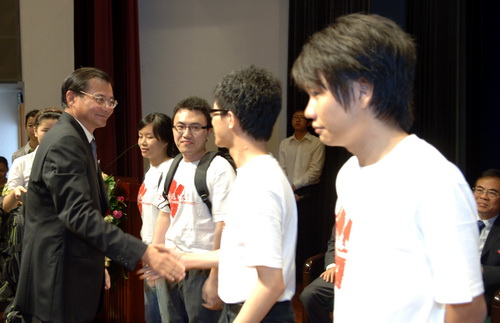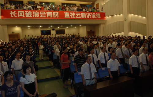 凤凰花开,红荔满枝,乐竞平台也迎来了丰收的季节。7月3日上午,我校2009届优秀毕业生表彰大会在国际会议厅举行。272名同学获优秀毕业生称号,校党委书记江潭瑜为优秀毕业生颁发证书并合影留念。校长章必功在表彰大会上致毕业词。