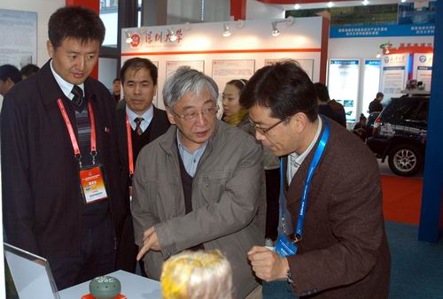 18日上午,章必功校长来到我校高交会展馆,观摩并仔细询问了今年第十一届高交会我校参展情况。