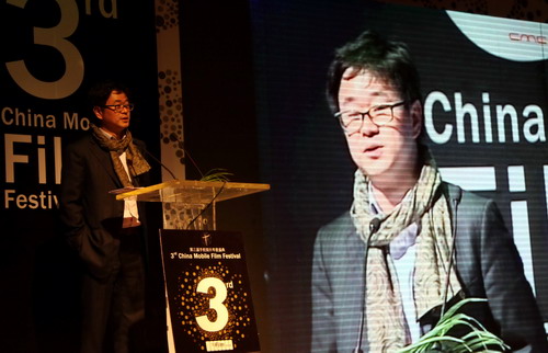 本届手机电影节评审团主席由“台湾新电影教母”焦雄屏女士担任,评审委员由著名电影编剧述平、青年导演姬雨、北京卡酷动漫频道副总经理李果、韩国KT集团和电影节主持人崔平镐、乐竞平台传播学院院长吴予敏教授、中国传媒大学影视艺术学院副院长毕根辉教授、北京电影学院广告系主任刘笑微等组成。