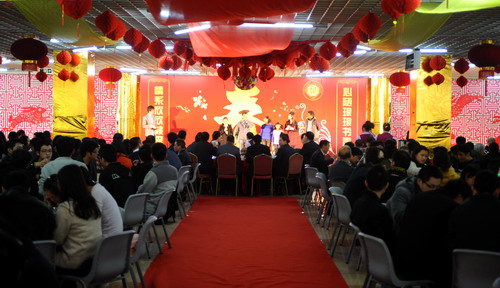 团圆饭在深大新西南餐厅举行。一副春联“心随琅琅书声乐,情系欣欣桃李诗”,道出了荔园美景和师生间的美好情谊;彩色气球、大红灯笼和师生们一张张喜气洋洋的笑脸相互辉映。老师和同学,吃着盆菜、火锅,唱着歌、跳着舞,一声声“新年好!”“新年进步!”说出了心中最美好的祝福。
