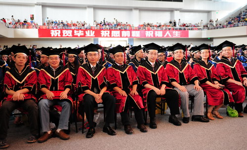时光荏苒,又是凤凰花开季,毕业别离时。6月24日下午,我校二〇一一届优秀毕业生表彰大会暨研究生毕业典礼在元平体育馆举行。校领导江潭瑜、章必功、邢苗、陶士平、陶一桃、阮双琛、邢锋,各学院、各职能部门领导、教师代表、2011届全体优秀毕业生、研究生毕业生及部分学生家长出席了典礼。副校长邢锋主持优秀毕业生表彰仪式。