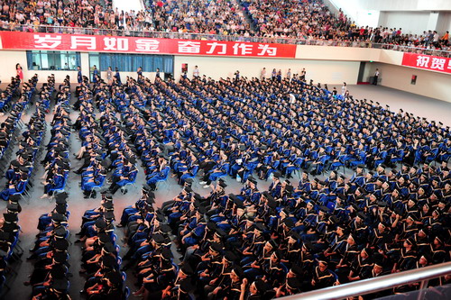 6月25日至26日,乐竞平台2011届本科生毕业典礼暨学位授予仪式分四场继续在元平体育馆举行。校学位评定委员会主席、校长章必功在典礼上致辞并一一为毕业生颁发证书。校学位评定委员会副主席陶一桃、邢锋、李永华和各部室负责人、各学院院长、书记、教师代表分别出席了四场仪式。部分毕业生家长也前来现场观礼。
