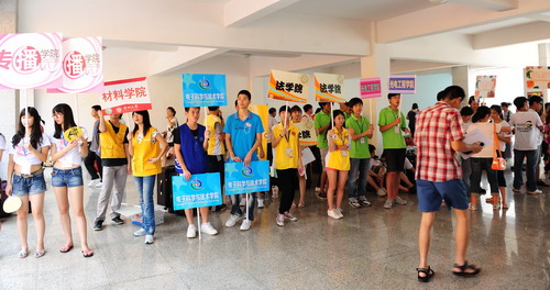 在迎新现场,学生会、义工联、各学院以及自发前来的师兄师姐们们热情地为新生“抢包抢行李”,校内主要道路设置了多个咨询点,张贴醒目的校园地图,为新生提供详细的路线指引和搬运行李等帮助。学校军乐团在运动广场前热烈地奏响欢迎曲,现场处处充满着有喜悦、耐心、热情的笑脸。