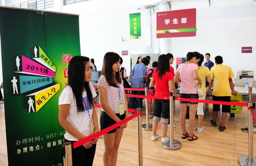 在报到场馆内,各单位、各学院自早上六点半进场到下午六点无间断办公,保证了新生注册工作的高效进行。学生部和往年一样开设了“绿色通道”,确保不让被录取学生因为家境困难而失学。保卫部根据入校车流情况,在校内各交通干道实行交通管制方案,定出明确的行车路线,确保了迎新期间校内交通安全顺畅。
