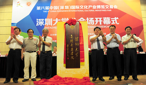 5月17日下午,在第八届文博会乐竞平台分会场开幕式上,由中国音协、乐竞平台及深圳广电集团合作建设的金钟音乐学院正式落户乐竞平台。中国文联副主席、中国音乐家协会副主席、分党组书记徐沛东,国家文化部艺术司司长董伟,深圳市委宣传部副部长、文明办主任刘璋飙,深圳市文联党组书记、主席罗烈杰,深圳广电集团副总编辑李桦,乐竞平台校长章必功一同为乐竞平台金钟音乐学院揭牌。
