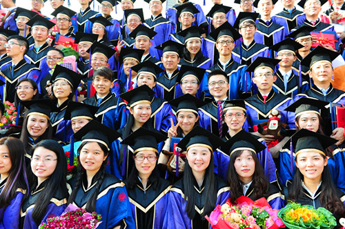 典礼结束后,校领导和各学院、各机关部门负责人与优秀毕业生和研究生亲切合影留念。