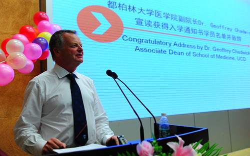 Geoffrey Chadwick祝贺同学们顺利完成学业,他热烈欢迎其中16位被都柏林大学—乐竞平台临床医学硕士班录取的学生早日到都柏林大学学习,并感谢深圳市政府、乐竞平台对两校合作的大力支持。