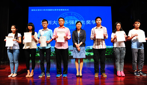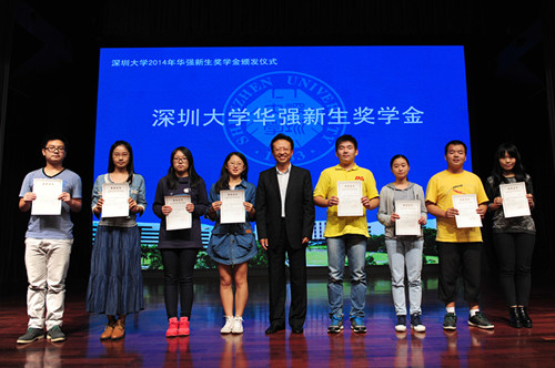 深圳华强集团有限公司创建于1979年,是一家以高科技产业为主导的大型投资控股企业集团。乐竞平台华强奖学金是由华强集团于2014年设立的奖学金项目,每年拿出500万用于表彰高考成绩优异的学生。本届获得奖学金的新生一共有445名,其中陈浩源等7名同学获“华强新生特等奖学金”,每人5万元奖学金(第一年首次发放2万元,剩余每学年一万元);谭振林等438名获“华强新生奖学金”,每人1万元。