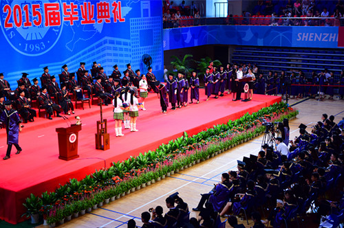 大学生曾是年轻人中的翘楚、精神的刀锋。当上大学不再是少数人的神话,你们可能不那么热衷于谈论价值取向和精神使命,而更多地关心个人发展和社会现实。今天的你们,条件更优越,视野更开阔,思维更活跃,风格更多样,把握世界潮流的触觉更敏锐。深大也刚好过而立之年,正以更成熟、稳健、自信的步伐走向未来。你们站在更高的起点出发,或继续深造,或走上职场。无论在哪里,你们都是深大的一张张名片,我希望在这些名片上能够看到: