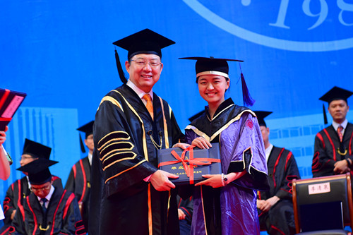 李清泉为博士学位、硕士学位获得者一一颁授证书。