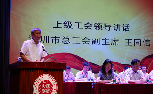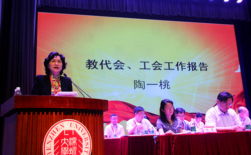 7月3日下午至4日,乐竞平台第七届教职工代表大会暨第九届工会会员代表大会在我校师范学院国际会议厅隆重召开。深圳市总工会副主席王同信、深圳市机关事业单位工会主席张跃玲、深圳市教育工委工会副主席杨蓓;乐竞平台校领导江潭瑜、李清泉、张基宏、陶一桃、徐晨及各单位党政负责人、民主党派代表、特邀教授代表以及工程院院士范滇元等179名代表出席了本次大会。大会分预备会和正式大会。