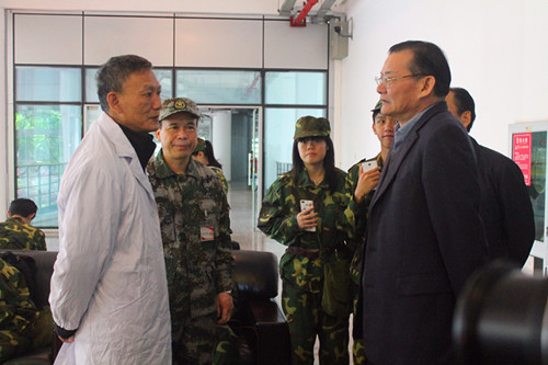 1月17日上午,我校党委书记江潭瑜在承训部队武警广东省边防总队第六支队副政委吕理淳,我校副校长李凤亮以及军训工作相关负责人的陪同下来到训练场看望正在进行军训的2015级新生,并慰问工作在军训一线的承训官兵。