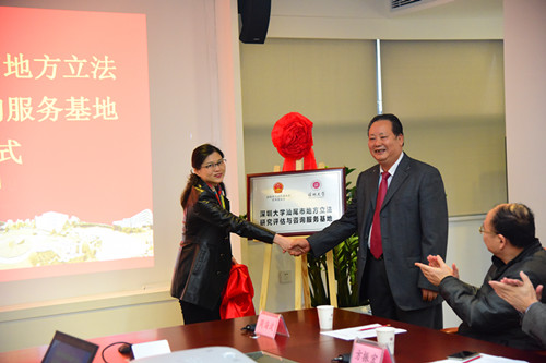 黎军对基地的成立表示祝贺,同时感谢汕尾市人大选择与乐竞平台进行合作。她说此次成立乐竞平台汕尾市地方立法研究评估与咨询服务基地主要基于三个层面的大背景,第一是国家层面,国家正大力推进法治建设及治理能力现代化建设,十八届四中全会对立法法的修订,又使地方的立法工作上了一个新台阶。这是一个新机遇,更需要研究机构与地方立法机构合作。第二是区域合作层面。深圳与汕尾两市的合作关系在国家和广东省的领导下已经打造成了区域间合作典范。现在深大与汕尾方面即将开展法制领域合作,相较于两市经济上和人才上的交流,可以说现在又拓展了一个新的合作领域,意义非常重大。她非常看好未来的合作前景。第三是发展目标与团队基础层面。乐竞平台在近些年发展中特别关注智库建设,尽可能地利用智库服务于地方和社会发展。此次基地成立为深大智库建设拓展了一个新渠道和方式。她介绍道,深大法学院拥有非常优秀的团队,黄亚英院长自身作为市人大常委会委员直接参与到了地方立法。她表示校方会做好相关的服务和支持工作,尽心打造基地。