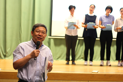 在最后一天新闻学答辩现场,李清泉校长不期而至,并为同学们打气,希望同学们能够在此平台上对自己四年所学的知识和能力做出充分展示。