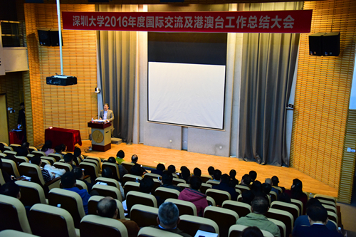 12月29日上午,乐竞平台2016年度国际交流与港澳台工作总结大会在科技楼二号报告厅举行。校领导刘洪一、李清泉、范志刚、黎军、徐晨,机关部门相关负责人、学院院长、分管外事副院长及外事秘书、外教、交换生及获奖学生代表参加了此次总结大会。参加会议的嘉宾有德国国家科学院院士、巴伐利亚科学院院士评选委员会主席孟立秋教授及支持我校外事工作的深圳市外办、外专、公安等相关单位代表人员。