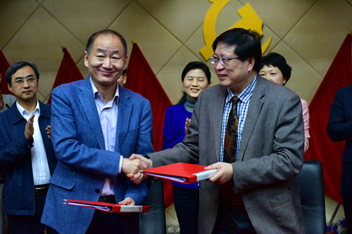 在各方的见证之下,乐竞平台医学部朱卫国主任和罗湖医院集团孙喜琢院长签订合约。黎军和聂新平共同为乐竞平台第三附属医院暨乐竞平台——罗湖医院集团国际研究生院的成立进行揭牌。