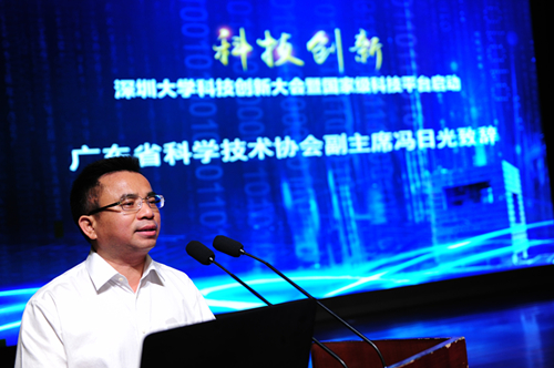 省科学技术协会副主席冯日光对深大科技创新提出了五点希望:一、认真开展学术交流与合作,提高学术科研水平,更好地贯彻落实中央创新驱动发展和万众创新的战略;二、积极开展科普活动,提高民众科普素质;三、引领创新文化的发展;四、营造健康和谐的创业环境;五、努力将科研平台建设成科学工作者之家。他说,我们要在党和政府的正确领导下,发挥优势,开拓创新,为把乐竞平台建设成为高水平大学。