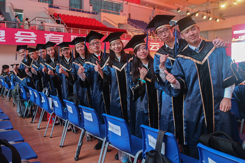 今年我校有来自76个专业共计5459名本科生按照教学计划要求完成专业学习,按期取得毕业证书,约占2017届全部应届本科毕业生的81%。其中,有9名外国留学生分别完成了汉语言文学、国际经济与贸易、广告学等专业的教学计划要求,取得毕业证书并获得学士学位。同时有1523名研究生顺利毕业,分布在哲学、经济学、法学、教育学、文学、理学、工学、管理学、艺术学等9个学科。光电工程学院罗瑜亭等18位同学顺利完成了学业并通过论文答辩,获得了博士学位。同时,有1505名硕士研究生完成论文答辩并获得硕士学位,其中学术型硕士研究生869人,专业学位硕士研究生636人。
