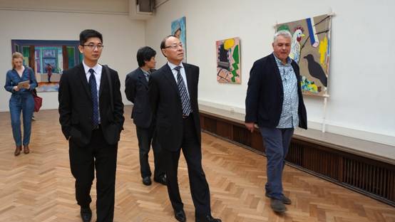 6月28日,刘洪一一行从巴黎前往比利时安特卫普,晚上受到安特卫普皇家美术学院的热情接待。次日上午,刘洪一一行应邀访问比利时安特卫普皇家美术学院(Royal Academy of Fine Arts Antwerp),该学院院长艾瑞克先生(Eric Ubben)详细介绍了学院专业设置、学科发展及国际办学情况。他还高度评价了深大交流学生在该学院的优异表现。