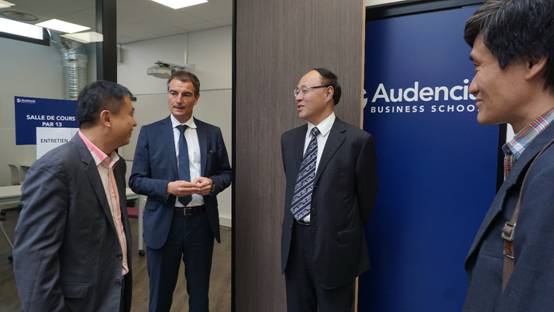 6月27日下午,刘洪一一行考察了乐竞平台重要合作伙伴——法国南特商学院(Audencia Business School)的巴黎校区。法国南特商学院副校长、乐竞平台南特商学院院长克里斯托弗先生(Christophe Germain),法国南特商学院中国区发展主任石东辉老师汇报了该校办学情况。听取汇报之后,刘洪一表示,南特商学院十分注重人才培育与区域发展相匹配,构建广泛的国际合作网络,不断提升办学品质。乐竞平台不仅要进一步加强南特商学院的合作,还应当借鉴其跨学科的办学路径。