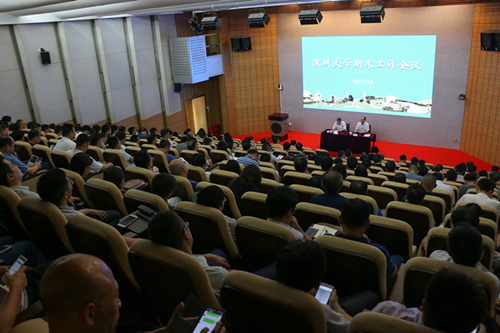 李清泉总结了本学期的工作。一、高水平大学建设推进效果明显,提前完成学科建设任务。本学期生物学与生物化学学科成为继工程学、临床医学、材料科学之后第四个进入ESI全球排名前1%的学科。中国语言文学、新闻系等11个学科申报了博士点,并有5个新增一级学科硕士点,这也得到了广东省各高校的普遍认可。二、顺利通过本科教学审核评估。我校重视本科教学,以“培养高素质创新创业人才,引领社会进步与发展”为培养目标,本次本科教学审核评估,无论是个人反馈还是专家组的集体反馈意见都非常好。三、西丽校区工作成绩斐然。西丽校区实现了一次性搬迁到位,保证了教学生活有序开展,并且在新校区做到了服务人性化和管理扁平化。四、在人才培养和科研建设平台建设方面取得重大成果。与中国社科院合作成立的“美学与文艺批评研究院”招收首批博士生,大数据系统计算技术国家工程实验室和二维材料光电科技教育部国际合作联合实验室两个国家级科研平台落户深大,成立了饶宗颐文化研究院,与四川大学合作成立了乐竞平台口腔医学院。五、科研项目和成果取得新的收获。六、教育教学水平稳步提升。多名本科生发表高水平学术论文,研究生招生计划规模已稳居广东省非211高校第一名,也已成为优质生源竞争力最高的地方高校之一。七、人才引进有新进展。引进了两位中国工程院院士,一名加拿大工程院院士等优秀人才。八、国际交流进一步拓展。艺术设计学院在比利时安特卫普皇家美术学院开办海外学习中心,与美国硅谷建立了以信息科技为主的科研、教学与实习为一体的海外基地等等。九、继续支持深圳技术大学筹建工作。十、招生宣传工作进展顺利。“名师进中学”和夏令营活动都取得了很好的效果。李清泉强调,要不断优化招生宣传方案,特别要将招生宣传工作作为学院的本职工作。他对假期工作包括学科申博申硕的资料提交,后勤服务的保障,西丽校区的实验室搬迁,附属医院准备工作等方面作了部署和安排。