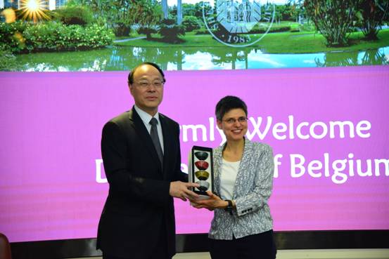 10月19日下午,比利时安特卫普省长Cathy Berx、比利时驻北京大使Marc Vinck、比利时驻广州总领事Joris Salden率领由比利时政商两界代表组成的访问团来访我校。我校党委书记刘洪一待了比利时代表团,并与来宾座谈。出席会议的还有外事处、计算机与软件学院相关负责人。