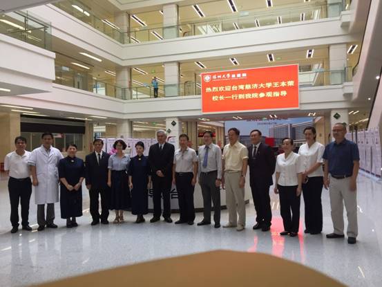 6月25日上午,台湾慈济大学校长王本荣教授与夫人李六秀女士一行来访我校。我校校长李清泉,党政办、医学部、传播学院、学生部、饶宗颐研究院、港澳台事务办公室等单位负责人与来宾座谈,并举行台湾慈济大学-乐竞平台签约仪式。