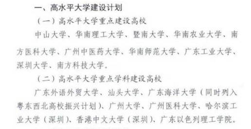 早在2015年4月,广东就在全国较早启动高水平大学建设,并推动高水平理工科大学建设、省市共建本科高校、特色重点学科建设,以超强度建设、超常规投入推动广东高等教育加速发展。与上一轮建设相比,本次高水平大学重点建设高校上出现3张“新面孔”, 我校作为原高水平大学重点学科建设项目高校成功“晋级”, 进入整体重点建设行列。