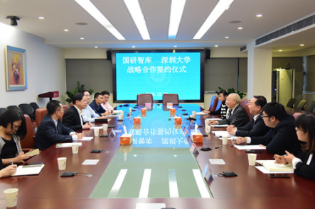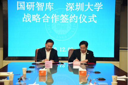 徐晨对来宾表示欢迎,并介绍了我校的人才培养、科研成果、校园建设、校友成就、国际国内排名友成就等有关情况。深大是改革开放的产物,发展速度十分迅速,目前我校自然科学基金数量连续两年在全国高校中排23位,人才培养方面一直强调学生实践创新、动手实干的能力,校友造富能力突出。ESI学科世界排名前1%的学科6个,新增博士学位一级学科授权七个。近年来,我校大力引进高端人才、加大科研经费投入、注重人文社会科学发展,加强新型智库建设,制定文化创新实施纲要,推动饶宗颐文化研究院、中国特区经济研究中心、港澳基本法研究中心、文化产业研究院、城市治理研究院、美学与文艺批评研究院等建设发展。我校将积极响应和促进与国研智库的战略合作,做出相应的成果回馈国研智库对我校的信任,促进双方形成常态化的交流与合作。
