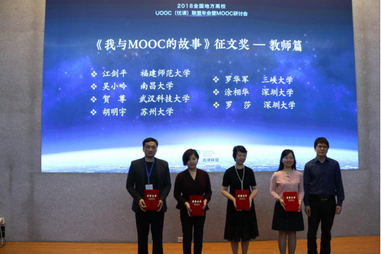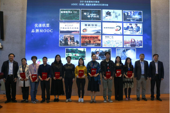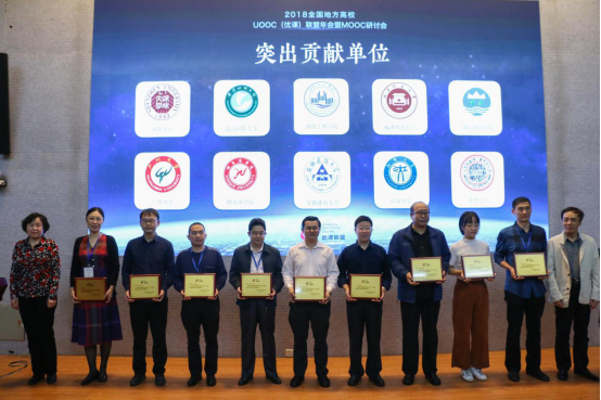 与会领导与嘉宾为UOOC联盟突出贡献单位、品牌MOOC课程、《我与MOOC的故事》征文奖获得者、优秀制作公司颁奖。