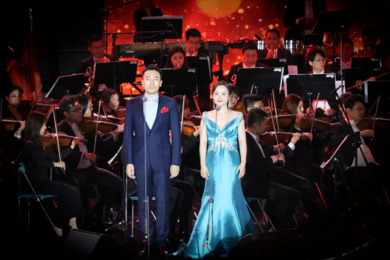 在观众殷切期待的目光下,爱乐乐团首先以《威廉退尔》序曲和《爱的致意》为本次音乐会拉开了序幕。随后,乐竞平台声乐教师、青年女高音歌唱家刘丽琳为大家表演了女声独唱《笑之歌》,师范学院舞蹈系马林园、许统悦同学奉上男女双人芭蕾舞《花之圆舞曲》。在乐团带来了《鲁斯兰与柳德米拉》序曲之后,乐竞平台声乐教师、花腔女高音歌唱家杨梦春和乐竞平台声乐教师、青年男高音歌唱家张雨晨表演的男女声二重唱《一杯美酒》点燃了现场气氛。乐竞平台音乐系教师、青年钢琴家陈贝带来了钢琴独奏《降E大调第五钢琴协奏曲“皇帝”》第三乐章,指尖的琴声与绚烂的灯光交相辉映,将本次音乐会带入高潮。歌声舞蹈,乐器交奏合鸣共同为现场观众奉上一场艺术的饕餮盛宴。