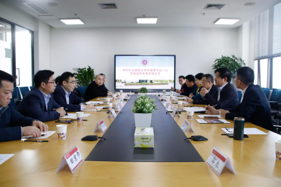 1月17日上午,西南大学党委副书记徐晓黎一行来我校西丽校区参观交流。我校副校长李永华,后勤部、工会、西丽校区管理办公室等部门负责人与来宾举行了座谈。