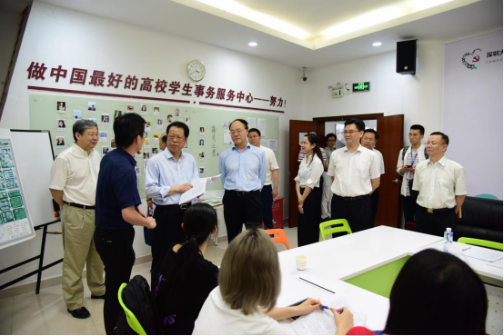 5月16日下午,深圳市委常委、市纪委书记、市监委主任张子兴,市纪委常委、秘书长、市监委委员刘原枫,市监委委员郭钢一行来我校调研。我校党委书记刘洪一,校长李清泉,党委副书记范志刚,党委副书记、纪委书记卢成燕,副校长徐晨、李永华以及我校相关职能部门负责人在办公楼201会议室与来宾座谈交流。