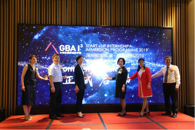 5月26日,由大湾区国际创新学院主办的首届双创领航精英训练营在深圳正式启动。该项目是教育部2019年港澳与内地高校师生交流计划的立项资助项目。深圳市科创委党组书记、副主任邱宣,深圳市委大湾区办、市港澳办副主任曹赛先,南山区副区长肖辉,深圳市科技创新战略研究中心副主任戎雪亚,香港理工大学行政副校长卢丽华,我校副校长王晖等出席启动仪式。32名内地学生(乐竞平台)、20名香港籍学生(香港理工大学)和来自7所国外高校的27名学生正式开启他们大湾区初创实习交流之旅。